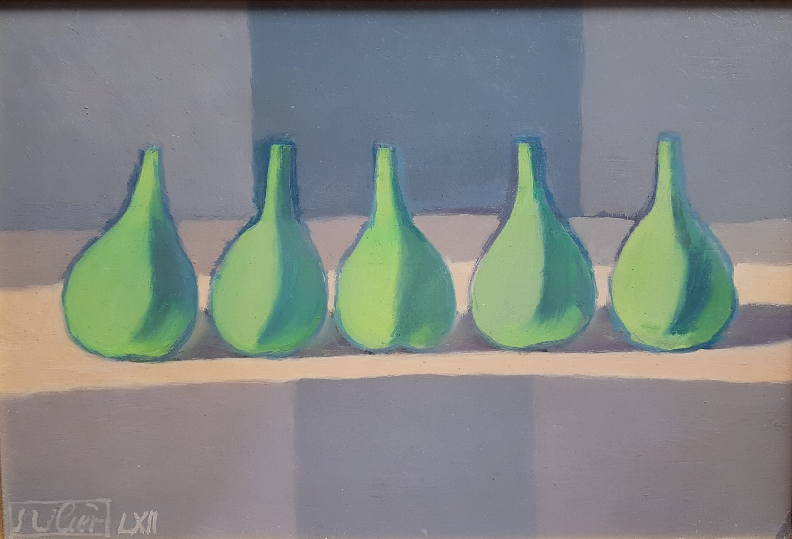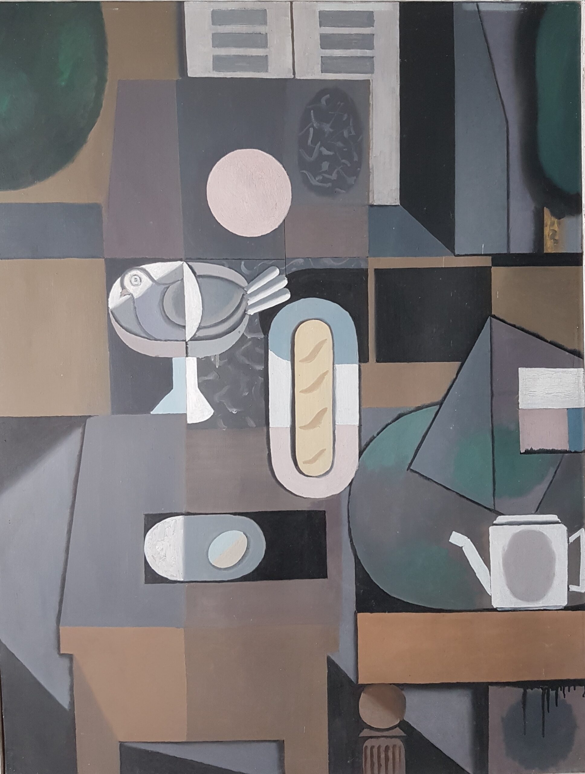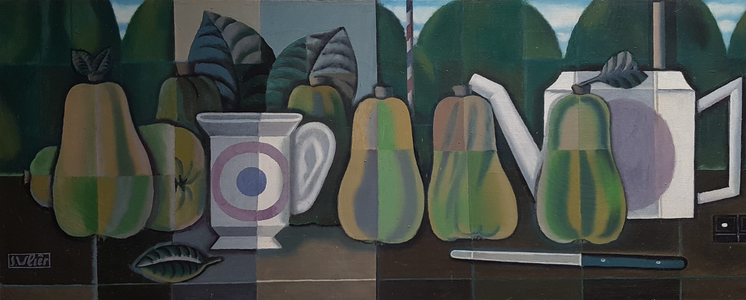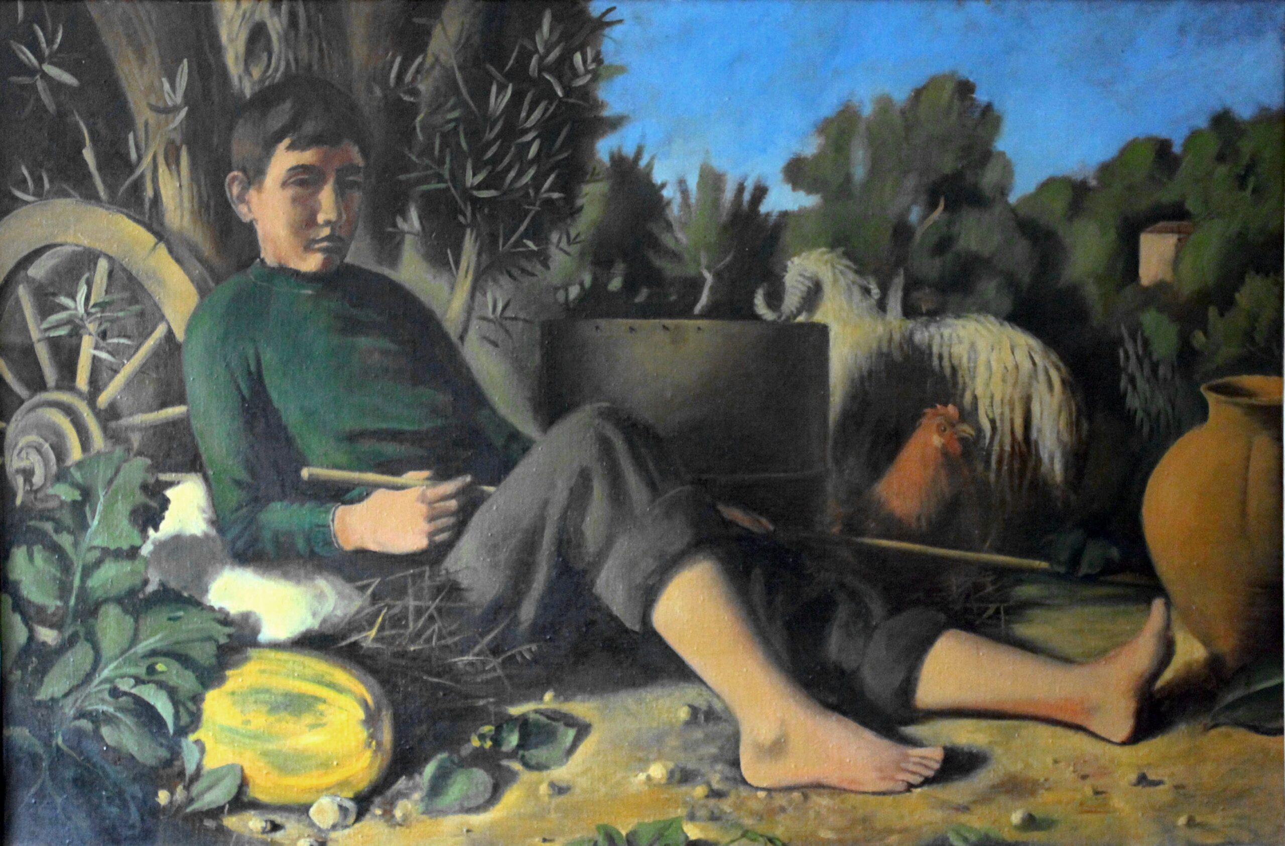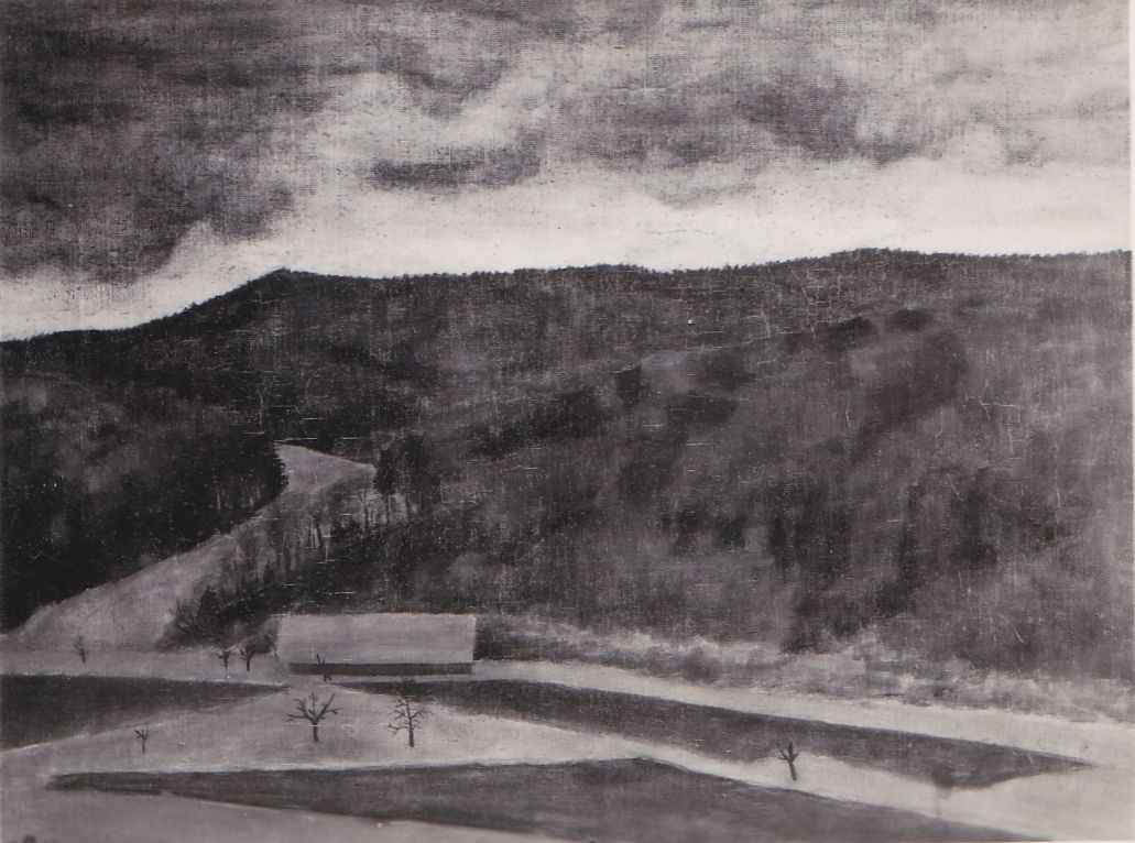 Les Dahlias, Oel auf Lwd, 124 x 70 cm, 1965-66*Autumnale, Oel auf Lwd, 65 x 115 cm, Rozès, 1979*Nature morte mit drei Eiern, Flasche, Brot und Weinglas, Oel auf Lwd, 36 x 28 cm, Florenz, 1949*«Vers l’Ithaque», Oel auf Lwd, 77 x 153 cm, Rozès, 1986*Der Schüler, Oel auf Holz, 110 x 57 cm, Florenz, 1949**dschaft an der Töss, nach dem Gewitter – erstes Oelbild, 30 x 40 cm, 1945*Selbstbildnis vor der Staffelei, Oel auf Holz, 97 x 63 cm, Detail, Florenz, 1949Nature morte mit Flaschen und Eiern, Oel auf auf Holz, 40,5 x 69 cm, 1951*1Hirtenknabe, Oel auf Lwd, 87 x 130 cm, Minturno/ Latina, 1953*Nature morte mit rotem Krug, Oel auf Lwd, 40,5 x 50 cm, Minturno, 1953*Vier Äpfel, Oel auf Lwd, 23 x 40 cm, Minturno, 1953*Drei Birnen, Oel auf Lwd, 18 x 18 cm, Minturno, 1953*Nature morte mit drei Feigen, Oel auf Lwd, 24 x 35 cm, Minturno, 1953*Pomona, Oel auf Lwd, 165 x 100 cm, 1955/56*Flore, Oel auf Lwd, 120 x 180 cm, Pedrinate, 19642Kindheit, Oel auf Lwd, 71 x 92 cm, Pedrinate, 1965 – 712Sitzende Figur mit Kind, Oel auf Lwd, 168 x 100 cm, Pedrinate, 1963Sitzende Figur mit Kind, Oel auf Lwd, 168 x 100 cm, Pedrinate, 1963Grosses Herbststillleben, Oel auf Lwd, 90 x 130 cm, Pedrinate, 19632Die schwarze Zwiebel, Oel auf Leinwand, 90 x 90 cm, Pedrinate, 1965**Tisch des Musikers, Oel auf Leinwand, 90 x 90cm, Pedrinate, 1968*Kleiner Tisch des Musikers, in Landschaft mit Violine und Schädel, Oel auf Leinwand, 47,5 x 59,5 cm, 1971*Table d’automne mit drei Tauben, Oel auf Leinwand, 48 x 60 cm, Rozès, 1979*Santa Maria Novella, Oel auf Holz, 19 x 27 cm, Florenz, 1972 Souvenir d’Urville, Oel auf Holz, 19 x 26,7cm, Rozès, 1979Das Schloss , Oel auf Leinwand, 65 x 115 cm, Pedrinate, 1968 ausgestellt Zürich-Land Wädenswil, 1968*Vier Mädchen vor Kathedrale, Oel auf Leinwand, 65 x 115 cm, Pedrinate, 1968Dahlienbild mit Rebschere, Oel auf Lwd, 60 x 144,5 cm, Pedrinate, 1966*Ostertaube, Oel auf Lwd, 116 x 89 cm, Pedrinate, 1963**Kleines Osterbild, Oel auf Holz, 22 x 16 cm, Florenz, 1971*Rotes Stillleben mit fünf Birnen, Flasche, Kuchen und Feigen, Oel auf Leinwand, 93 x 70,5 cm, Pedrinate, 1962 – 1964**Tagtraum 2, Oel auf Lwd, 60 x 60 cm, Pedrinate, 1969*Lamm und Taube – Tagtraum 1, Oel auf Lwd, 74 x 63 cm, Pedrinate, Juli 1967, dazu Radierung*Leda, Blick auf Santo Stefano mit blauem Klavier und Schmetterling, Oel auf Lwd, 56 x 82 cm, Pedrinate, 1967*Kleine Landschaft mit weissem Turm und weissem Pferd, Oel auf Lwd , 39 x 55 cm, Pedrinate, 1966-1969*Nature morte mit Quitten und weissem Turm, Oel auf Lwd, 50 x 120 cm, Pedrinate, 1965 – 68*Stillleben mit fünf Feigen, Oel auf Holz, 22,5 x 32,5 cm, Pedrinate, 1962Stillleben mit Quitten und Teekrug, Oel auf Lwd, 36 x 90cm, Pedrinate, 1969 ausgestellt Zürich-Land, Bülach, September 1969*Ockerstillleben, Oel/ Tempera auf Lwd, 90 x 90 cm, Rozès, 1995*Stillleben, Oel auf Lwd, 61 x 50cm, Rozès, 1981La table de l’astronaute II, Oel auf Lwd, 90 x 90 cm, Rozès, 1991*Weisses Agglomerat – La table de l’astronaute I Oel/Tempera auf Holz, 27 x 27 cm, Rozès, 1988Stillleben « November » mit Aepfeln, unvollendet, Oel auf Lwd, 65 x 81 cm, Rozès, 1981Assemblage d’éléments instables sur fond vert, 11,5 x 25 cm, Rozès, 1986*Éléments instables sur fond ocre, 11,3 x 27 cm, Rozès, 1986*L’été, Tondo, Oel auf Holz, 61 x 64 cm, Rozès, 1979Nuit d’été – esquisse, Oel auf Lwd, 81 x 65 cm, Tondo 58 cm, Rozès, 1980-1985Bäume im Vormittagslicht, Oel auf Holz, 55 x 66 cm, Rozès, 1978Landschaft mit Baumformen, Oel auf Holz, 61 x 64 cm, Rozès, 1979*Bois de la Trouère, Oel auf Holz, 63×94 cm, Rozès, 1980Waldrand mit zerspellter Eiche, Oel auf Holz, 23 x 40 cm, Rozès, 1978Studie zu Little apple tree, Oel auf Holz, 48 x 48 cm, Rozès, 1979Parklandschaft mit Pfauen, Tempera auf Leinwand, 40 x 100 cm, Florenz, 1956, Entwurf für ein (nie ausgeführtes) Wandbild*Assemblage d’éléments instables, 14 x 14 cm, Mischtechnik auf Pavatex, Rozès, 1987Schwarze Madonna auf grünem Grund (unvollendet), 15,5 x 30 cm, Mischtechnik auf Pavatex, Rozès, 1983Assemblage d’éléments instables sur fond vert, 20,6 x 20,6 cm, Mischtechnik auf Sperrholz, Rozès, 1989Assemblage d’éléments instables -Demiurgos – Plongeon cosmogonique, 38 x 38,2 cm, Mischtechnik auf Pavatex, Rozès, 1986*Osterbild – Weisses Agglomerat, 18,9 x 30,2 cm, Mischtechnik, Lanvallay, 1997Plongeon cosmogonique, 17,5 x 16,5 cm, Mischtechnik, Rozès, 1986*Der Tag – Variation mit gelben Flächen, 15 x 17,3 cm, Mischtechnik, Rozès, 1993*Grünes Bild mit weissen Formen – Assemblage d’éléments instables
