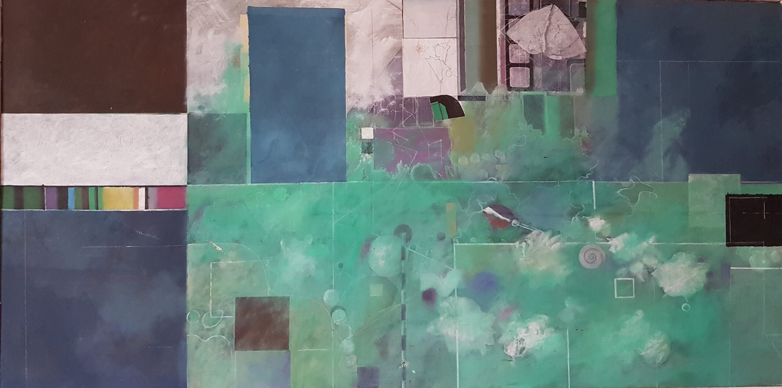 23 x 23,9 cm, Mischtechnik auf Pavatex, Rozès, 1987Kleines Eichenbild 15 x 17,6 cm, Mischtechnik, Rozès, 1987*Assemblage d’éléments instables – La table de l’astronaute, 27 x 27 cm, Mischtechnik auf Pavatex, Rozès, 1986Grosse Eiche mit schwebendem Gegenstand, 23,7 x 43 cm, Mischtechnik auf Pavatex, Rozès, 1988*Rotviolettes Quadrat – Eternal object – Landscape with Urbild, 13,9 x 13,9 cm,