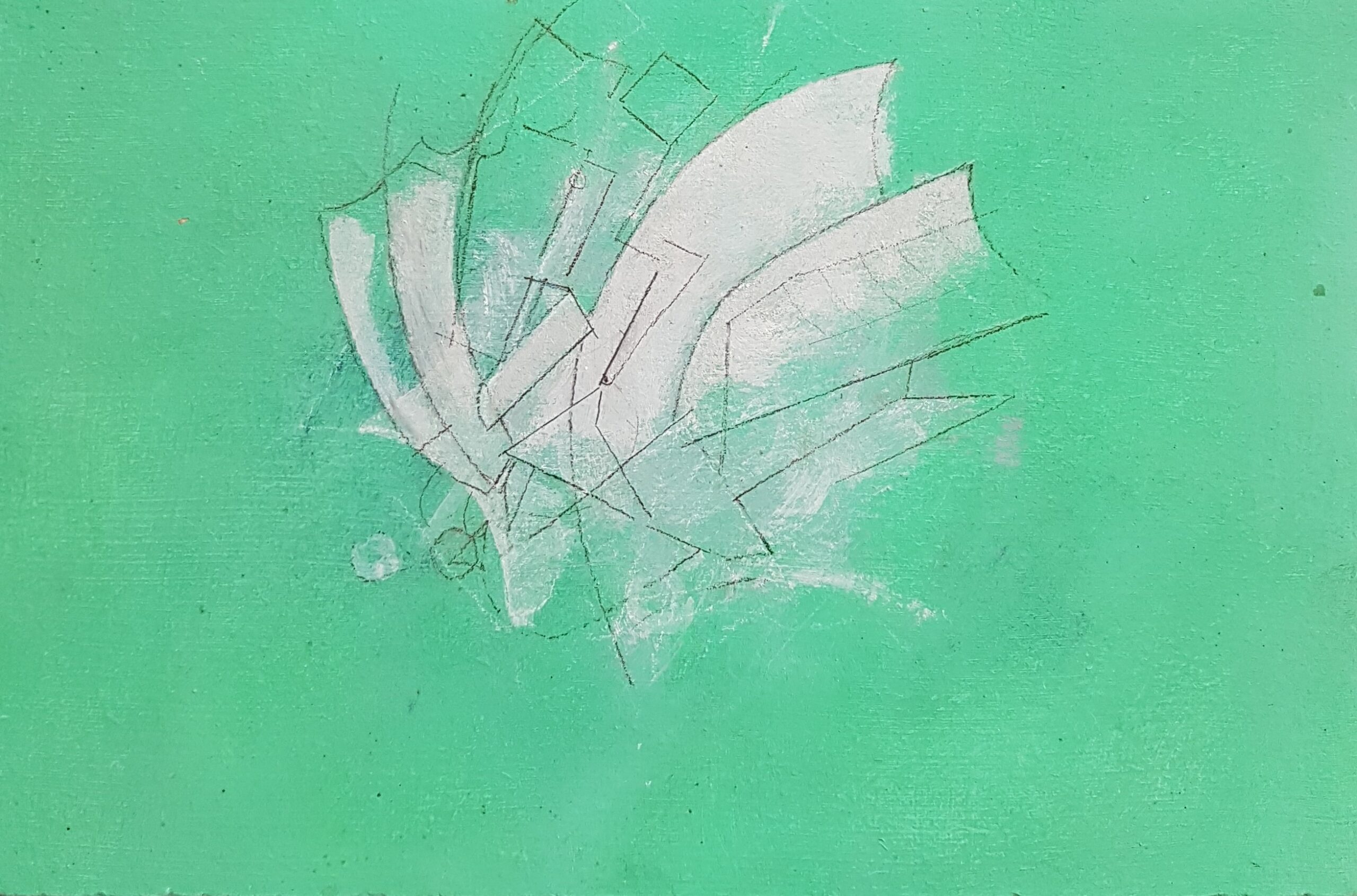 13 x 13 cm, Mischtechnik auf Sperrholz, Rozès, 1989Meerlandschaft mit weissem Agglomerat, 18,6 x 37 cm, Mischtechnik auf Sperrholz, Sainte Hermine, 2004*Weisse Gegenstände in Landschaft, 27 x 29,2 cm, Mischtechnik auf Pavatex,