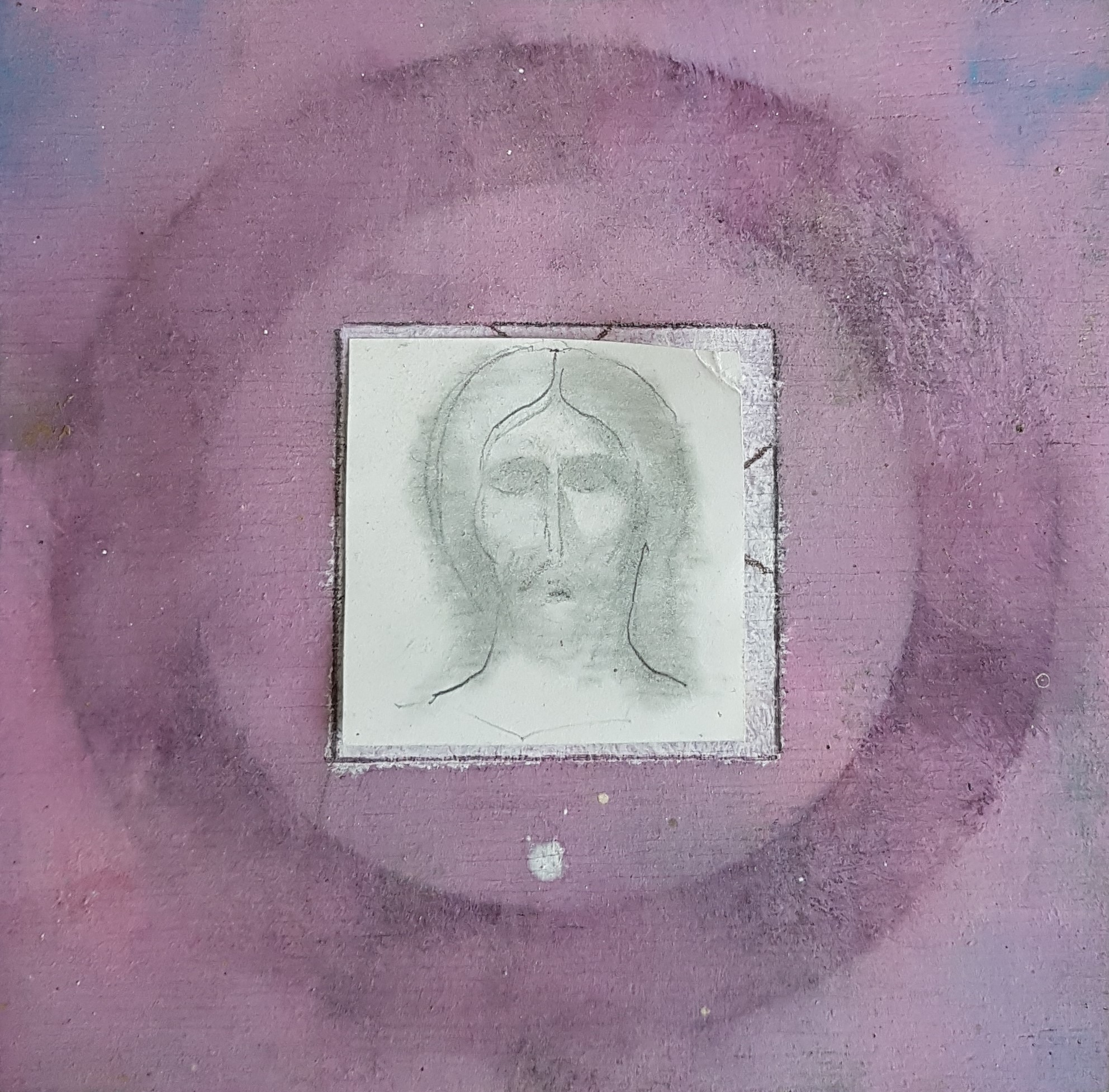 Mischtechnik auf Contreplaqué, Rozès, 1992Vier Quadrate auf violettem Grund, 16,7 x 16,7 cm, Mischtechnik, Rozès, 1990*Quadrat auf Wolkenhintergrund, 15,7 x 15,7 cm, Mischtechnik, Rozès, 1995Quadrat auf violettem Grund – Ikon und Lamm