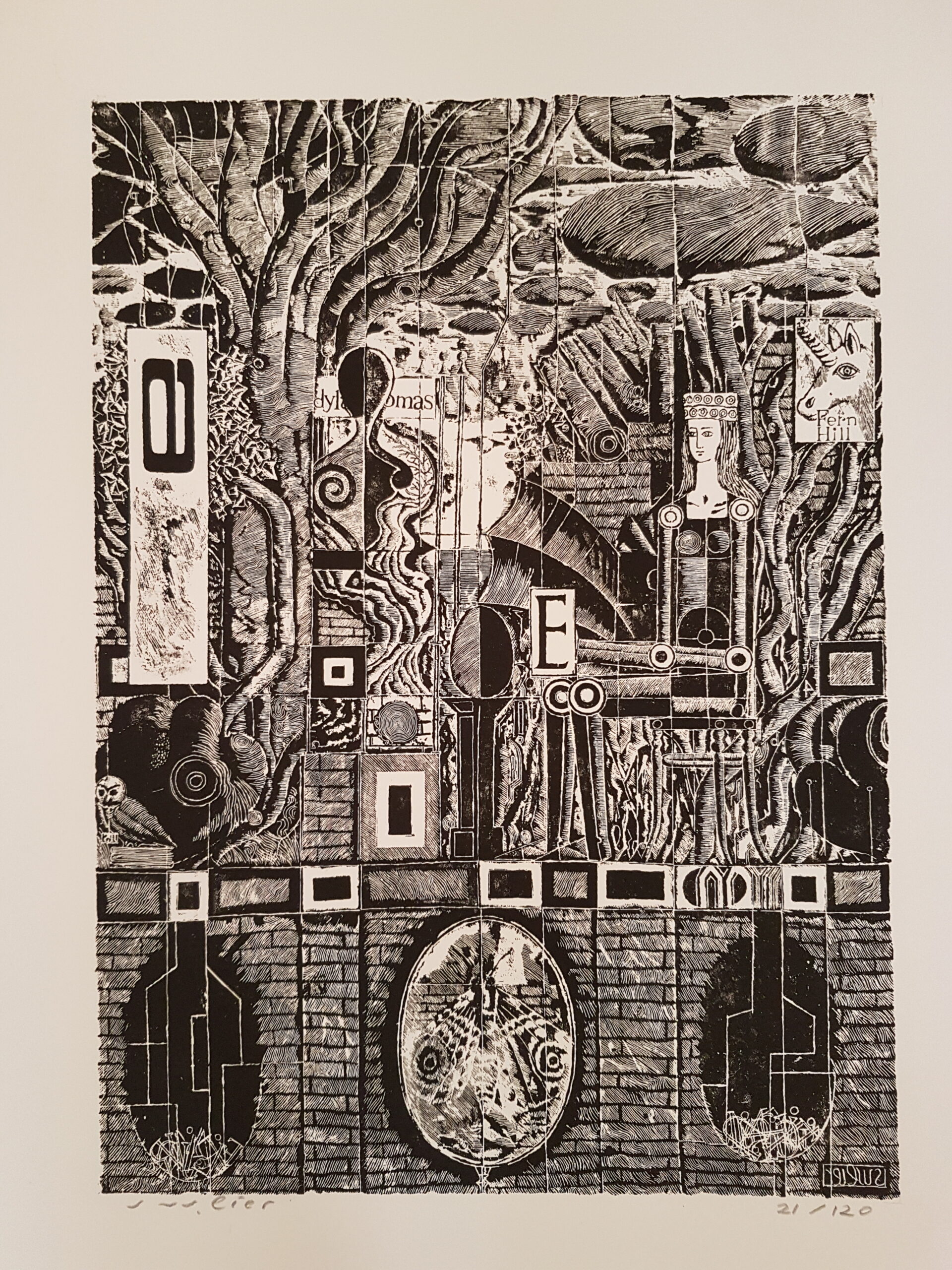 Dylan Thomas und die Muse 1967 – Handätzung für Zeitschrift „SPEKTRUM“ Nummer 36, Wald, September 1967, ausgestellt 3. Biennale für Grafik in Krakau